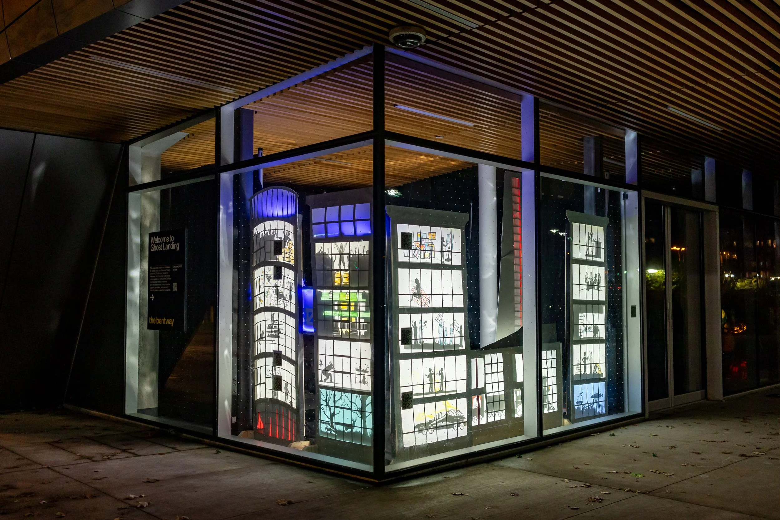 Ghost Landing was a large-scale windowfront installation by Caterwaul Theatre that haunted The Bentway Studio for one week of Halloween 2023.